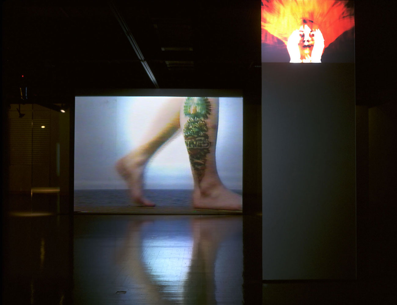 Part 2: Sandblasted glass column. Two laser disk back projections from digitally animated still photographs.